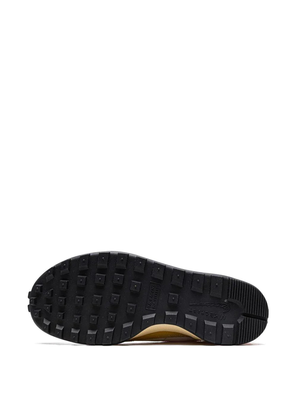 Nike has collaborated with the American artist, Tom Sachs, for a new sneaker model. This pair is crafted from yellow suede, highlighted with a white Swoosh logo on the sides while, underneath, a faux-vintage cream midsole alongside a black outsole finishes the look.