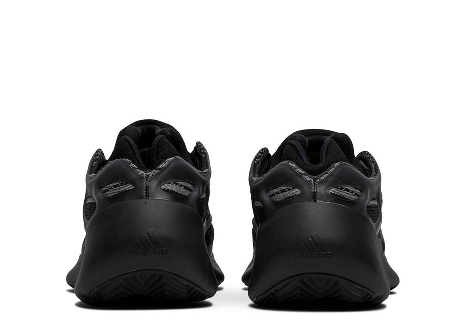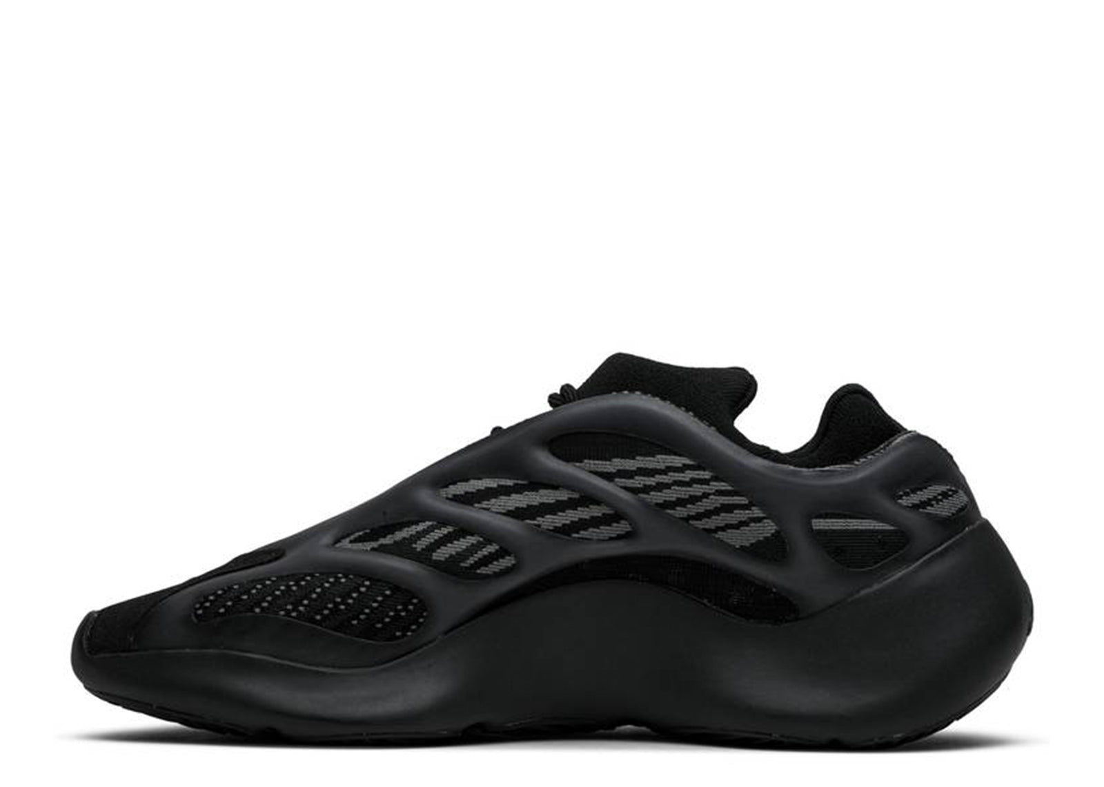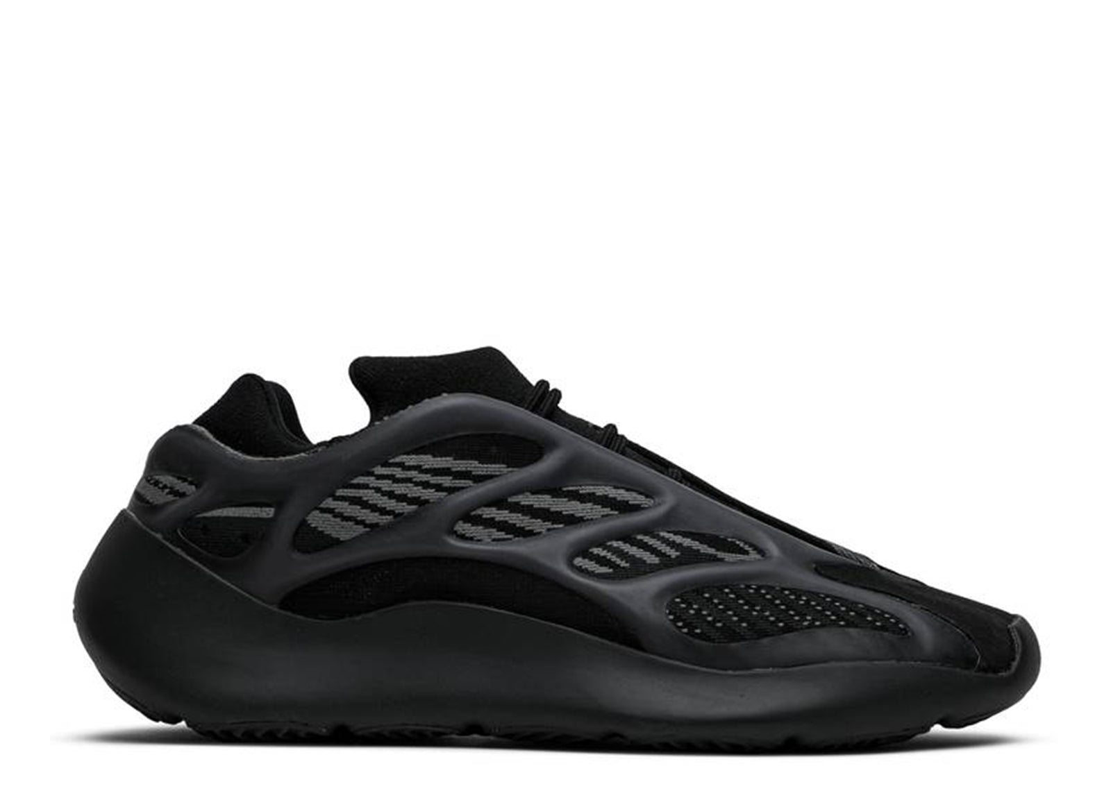 This adidas Yeezy 700 V3 Alvah is composed of a black and grey upper composed of monofilament engineered mesh with RPU overlays for structure and durability. The RPU cage has glow-in-the-dark features, along with 3M reflective detailing on the toe. The EVA midsole and herringbone rubber outsole complete the design.